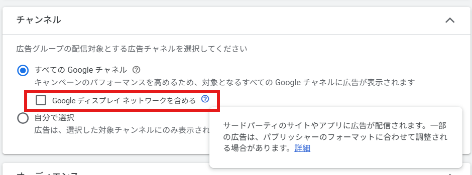 ▲デマンドジェネレーションでGDNの配信面を含める場合の設定