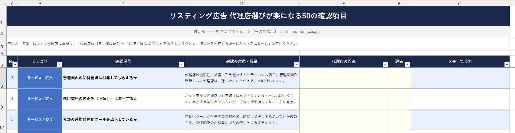 • 【Excelワークシートつき】リスティング広告代理店選びで確認したい50項目