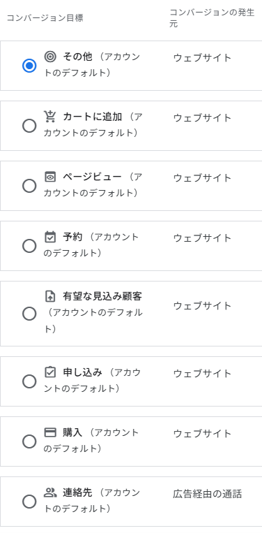 | 入札戦略 | コンバージョン数の最大化 目標コンバージョン単価 | クリック数の最大化 |