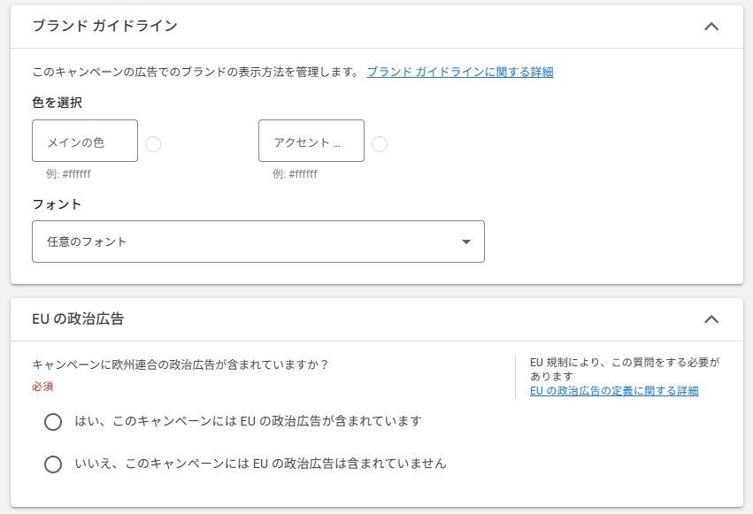 また、政治に関する広告はここで申請(チェックを入れるのみ)が必要です。