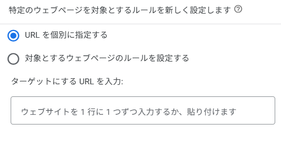 キャンペーン設定画面で対象のWebページのドメインを設定します。