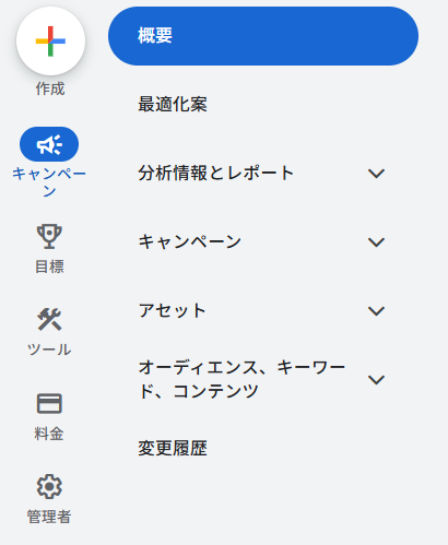 Google広告の管理画面にログインすると、画面左側にメニューが表示され、ここから各種機能にアクセスできます。「これだけ覚えておけばOK!」という大事な機能をサマリーとしてザッとご紹介します。