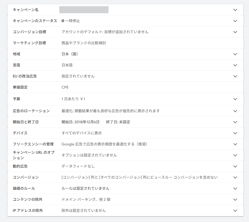 キャンペーン名をクリックして個別のキャンペーン設定画面に入ると、より詳細な設定を確認・変更できます。初心者が押さえておくべき重要な設定項目を解説します。