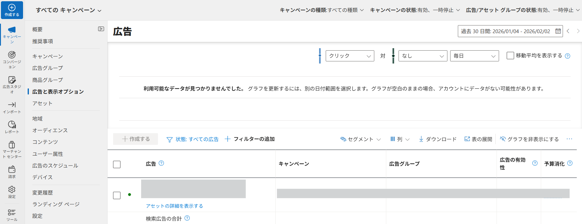 これだけ覚えればOK!Microsoft広告管理画面の基本的な機能をキャプチャで紹介