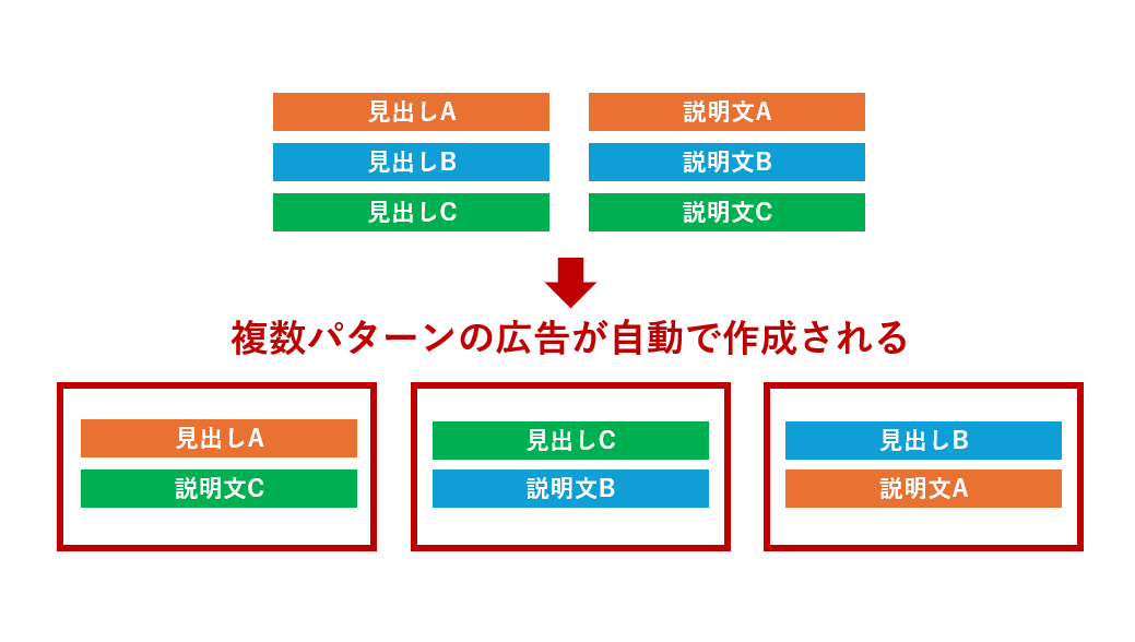 ①自動で関連性の高い広告文を組み合わせてくれる