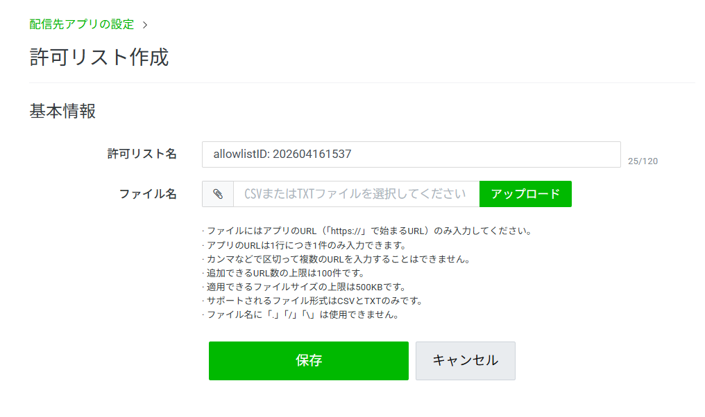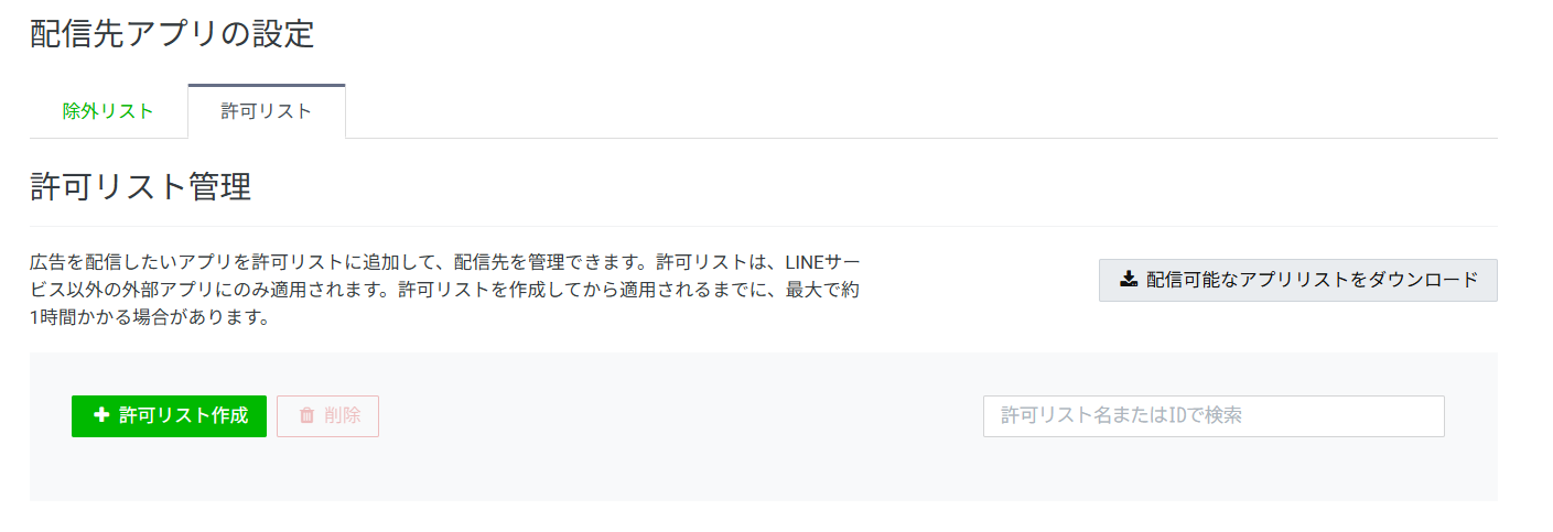 ファミリーアプリとネットワークディスプレイ広告を選択している場合、「許可リスト」を作成できます。配信したいアプリを追加して配信先を管理するもので、配信したくないアプリをまとめて除外することもできます。対象となるアプリの一覧はこちらのLINEヤフー公式ページからダウンロードできます。