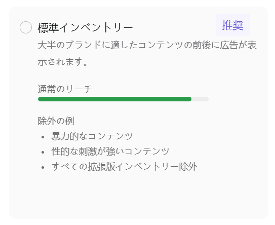 標準:ほとんどのブランドに推奨。極端な不適切コンテンツは除外