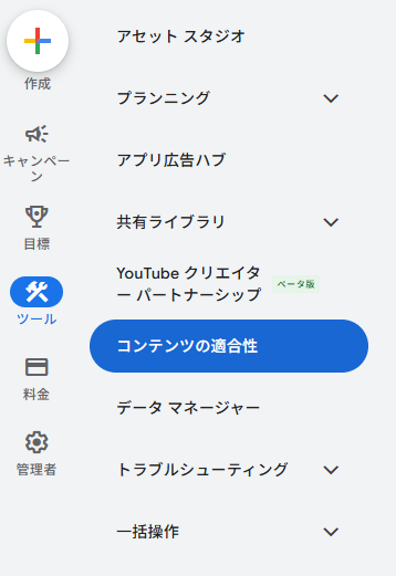 Google広告では、管理画面の「ツール」>「コンテンツの適合性」を中心に、広告主が自分で設定できる機能が豊富に揃っています。