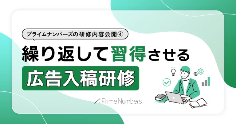 「Web広告の仕事って、興味はあるけど入社後に何をするかようわからんな~」「学校でマーケティングの授業を習ってない私が、入社後に活躍できるんやろうか~」 Web広告やWebマーケティングといった業界に対し、入社後に活躍で … 続きを読む プライムナンバーズの研修内容④|何度も繰り返して習得させる広告入稿研修
