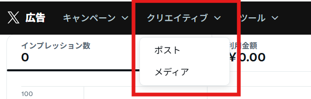 実際にユーザーに表示される広告クリエイティブを入稿・管理します。X広告では、基本的に広告のクリエイティブはポスト(=SNSとしてのXへの投稿)をベースに作成されます。広告として配信されるコンテンツはポスト(テキスト・画像・動画など)そのものです。