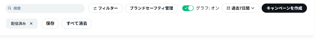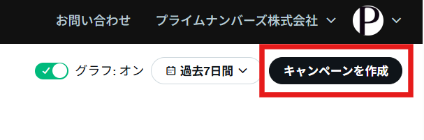画面右上の「キャンペーンを作成」ボタンから、新しいキャンペーンを作成できます。