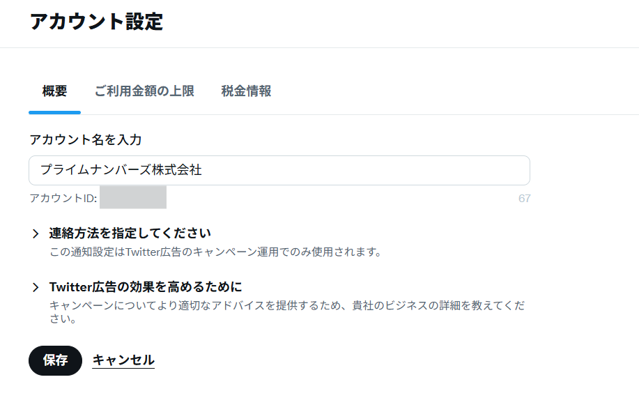 同じドロップダウンメニューの「アカウント設定」では、アカウント名や連絡先情報、通知設定の確認・変更ができます。利用額の上限や税金情報(個人か法人かなど)もここから確認・設定します。