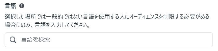 日本在住の英語話者など、特定の言語を話すユーザーにアプローチしたい場合に有効です。配信地域の主要言語と対象の言語が一致している場合(例:日本に配信する日本語の広告)であれば特に設定する必要はありません。