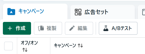 | A/Bテスト | 複数キャンペーンの成果を比較する機能。オンオフを選択 |