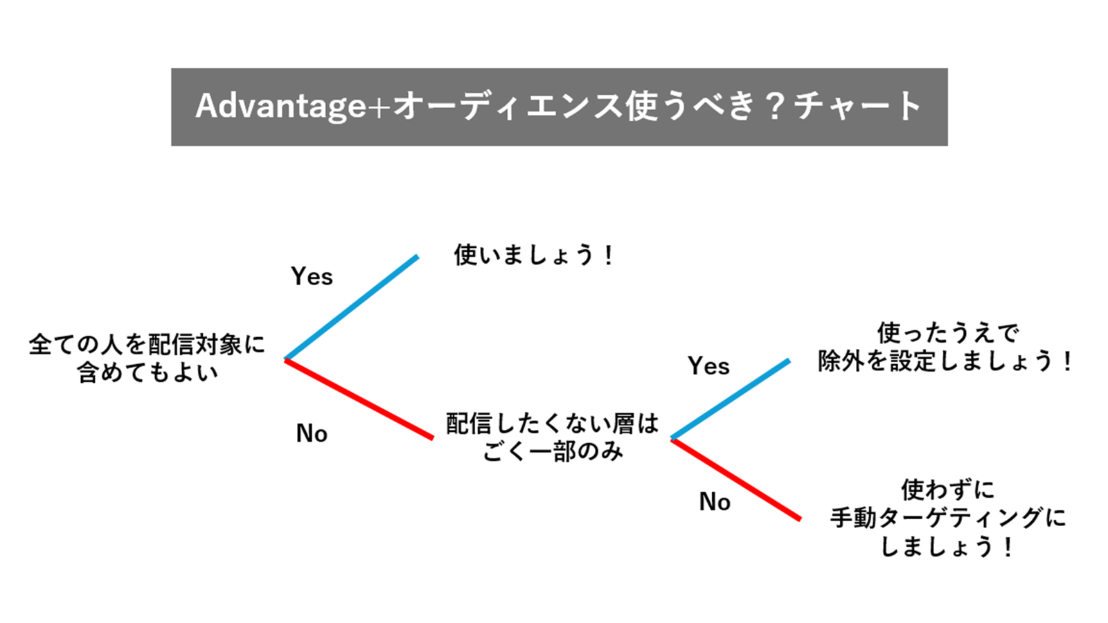 Advantage+オーディエンスを使うべき?迷ったら下記チャートで確認してみましょう。