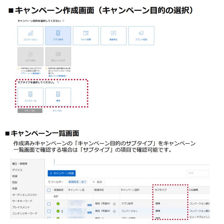 新設された「インストール」サブタイプを利用することで、アプリのインストール獲得に特化したキャンペーン運用が可能になり、広告効果の向上が期待できます。また、入稿画面の変更により、設定ミスが減り、よりスムーズな広告作成が可能になります。