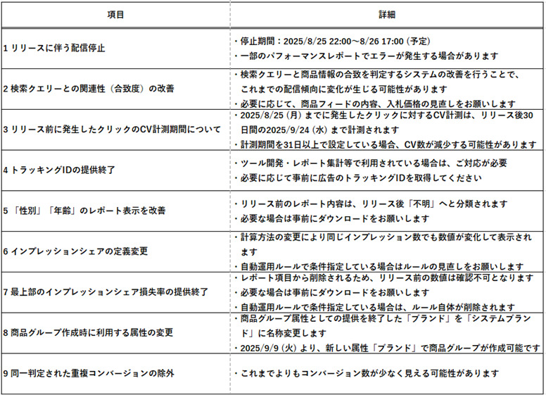検索連動型ショッピング広告において、より精度の高い広告配信と機能拡充を目的としたシステム刷新が行われます。これに伴い、一部機能が変更および提供終了となります。