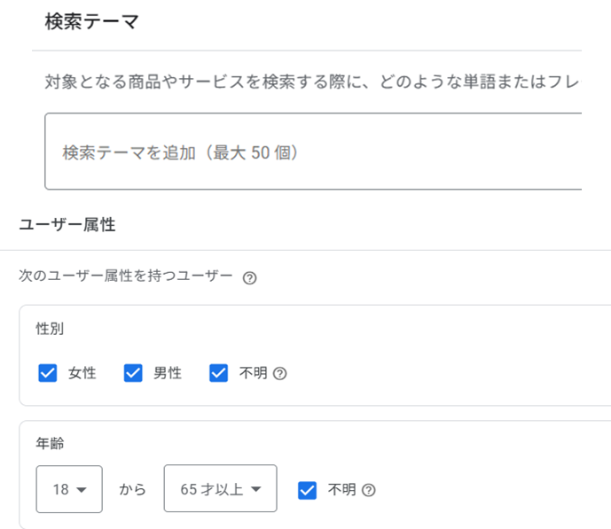 また、検索テーマの上限が50個に増加したほか、年齢・デバイスによるターゲティングが全面的に導入され、新たに性別ターゲティングのベータ版もリリースされました。