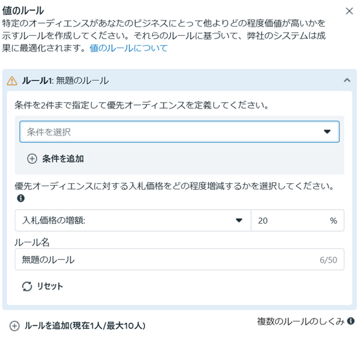 - 【Meta広告】特定のユーザー属性や配置に応じて入札額を調整する「値のルール」機能